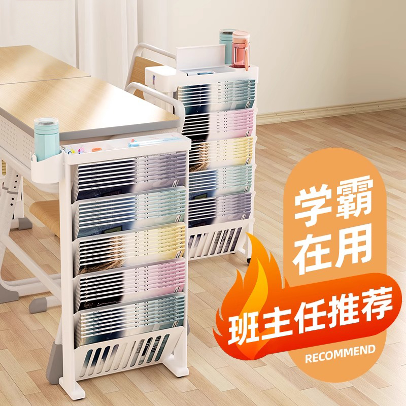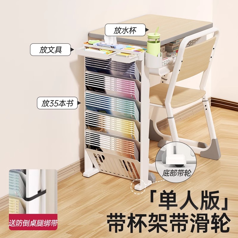 桌边书架学生教室用书桌收纳置物架课桌侧边挂书袋挂袋初中高中生旁带轮书本桌面放书侧挂书箱移动学校大容量