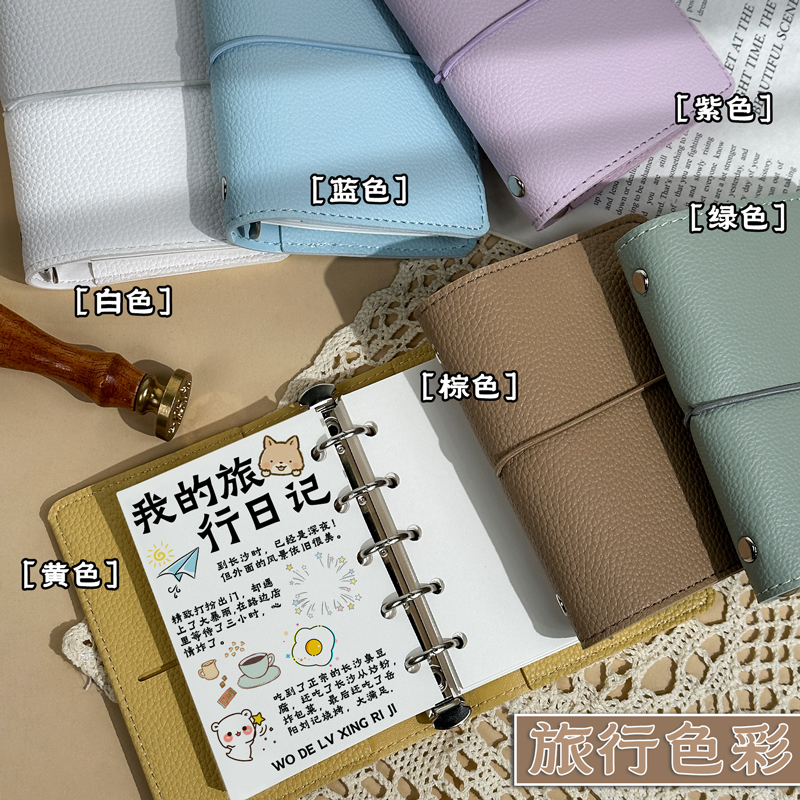 高颜值复古A7软皮活页本大容量旅游打卡活页笔记本空白文艺手帐本旅行纪念记录本迷你口袋笔记本景点盖章本