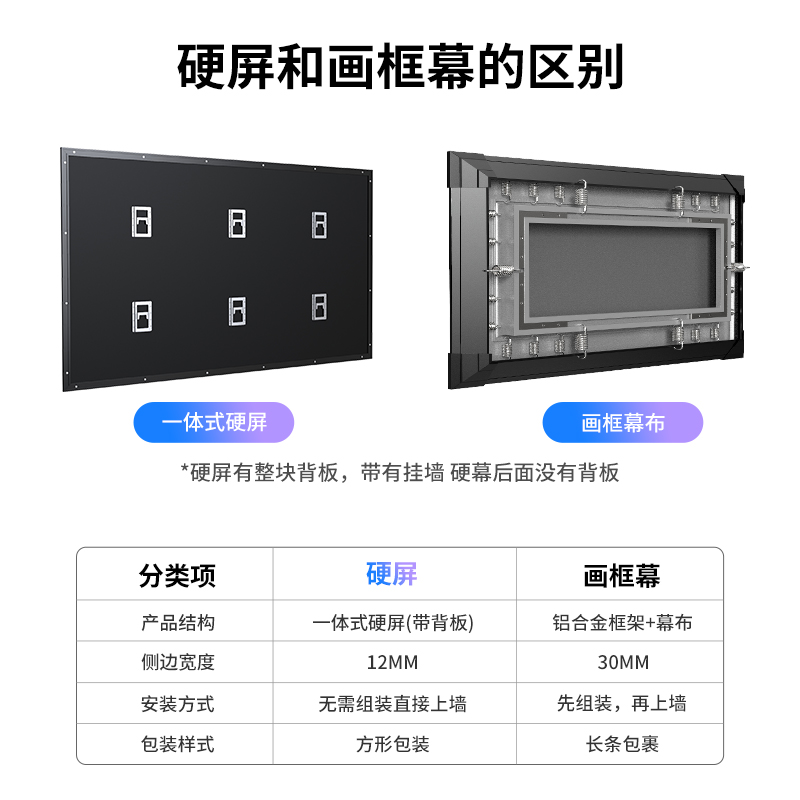 幕布抗光画框硬屏窄边框高清抗光室家用客厅X卧屏壁挂投影