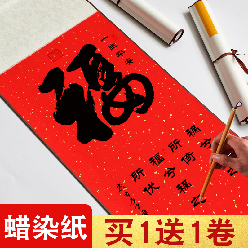 无日历款的卷轴空白纸小号万年红写福字的挂画烫金红纸画轴红色国画书法作品纸装裱好的半生半熟蜡染宣纸挂轴