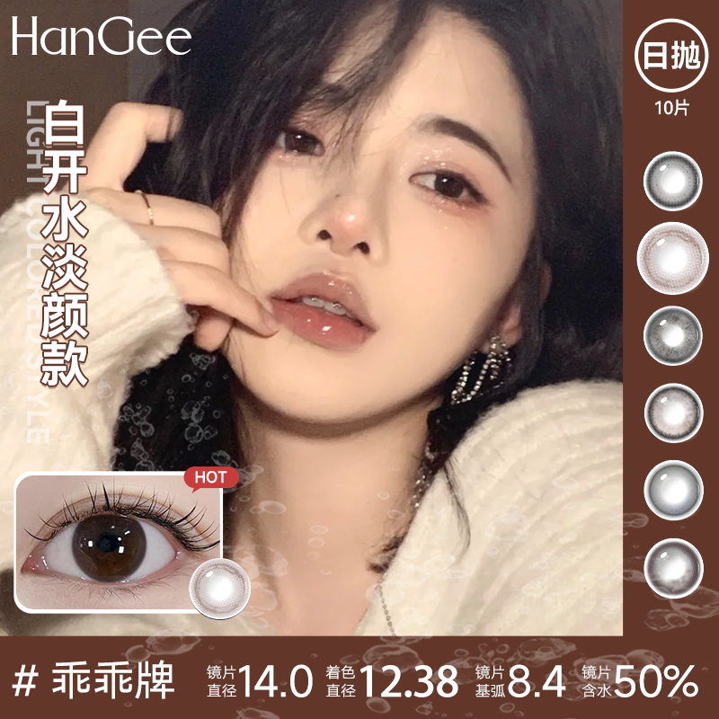 HanGee三明治玻尿酸美瞳日抛小直径12mm自然13隐形眼镜正品带度数
