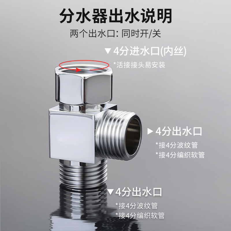 活接三通分水器内外丝一分二接头一进二出水龙头配件洗衣机花洒