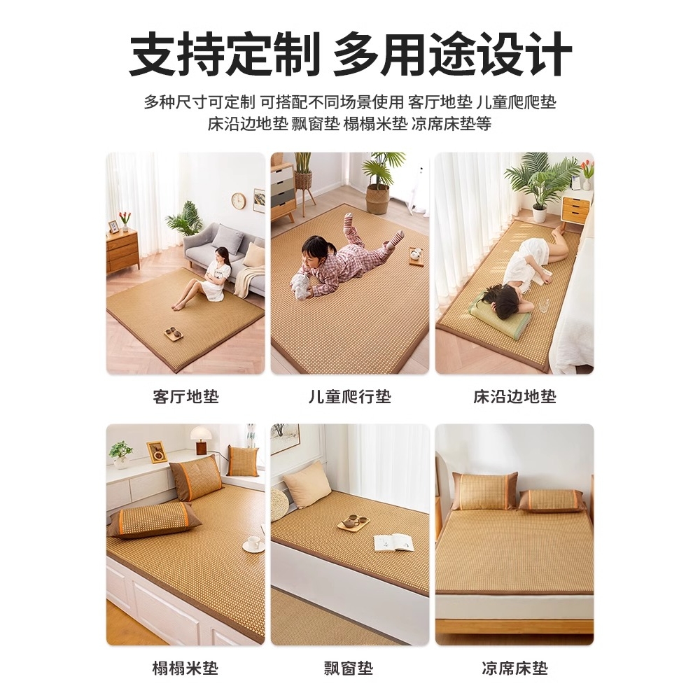 凉感透气日式藤席夏季地铺床边毯榻榻米垫子客厅凉席地垫折叠家用
