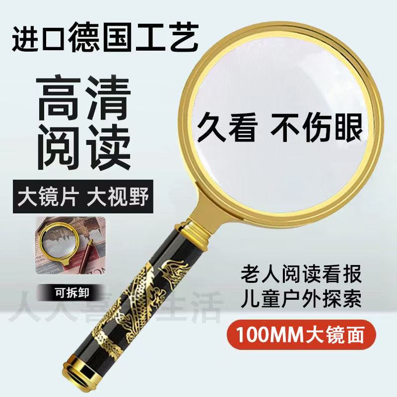 德国放大镜高清正品老人用100倍2025年新款手持高倍扩大镜用阅读看书报纸说明书老花镜鉴定专用便携式30倍