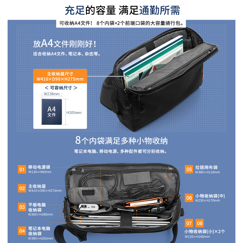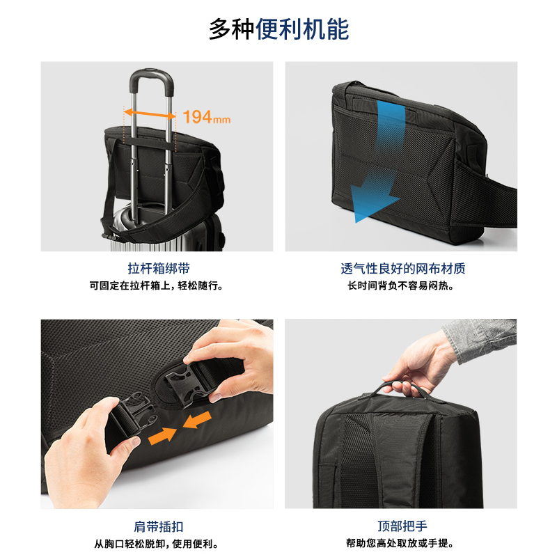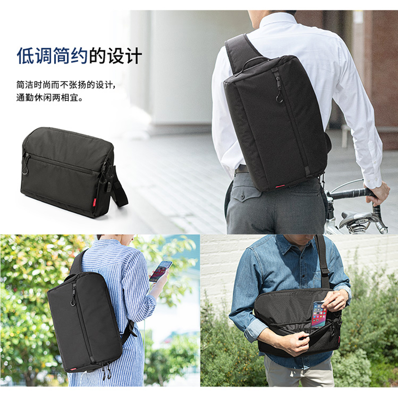日本SANWA山业单肩包女手提电脑包带USB斜挎男背包胸前包多口袋男士休闲潮品黑色邮差包可容纳14英寸笔记本