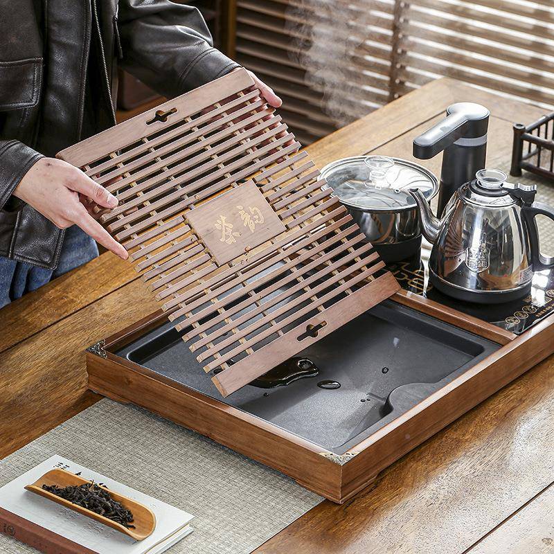 实木全自动茶盘家用带电炉烧壶磁一会体办67571公室客厅功水夫泡茶台整