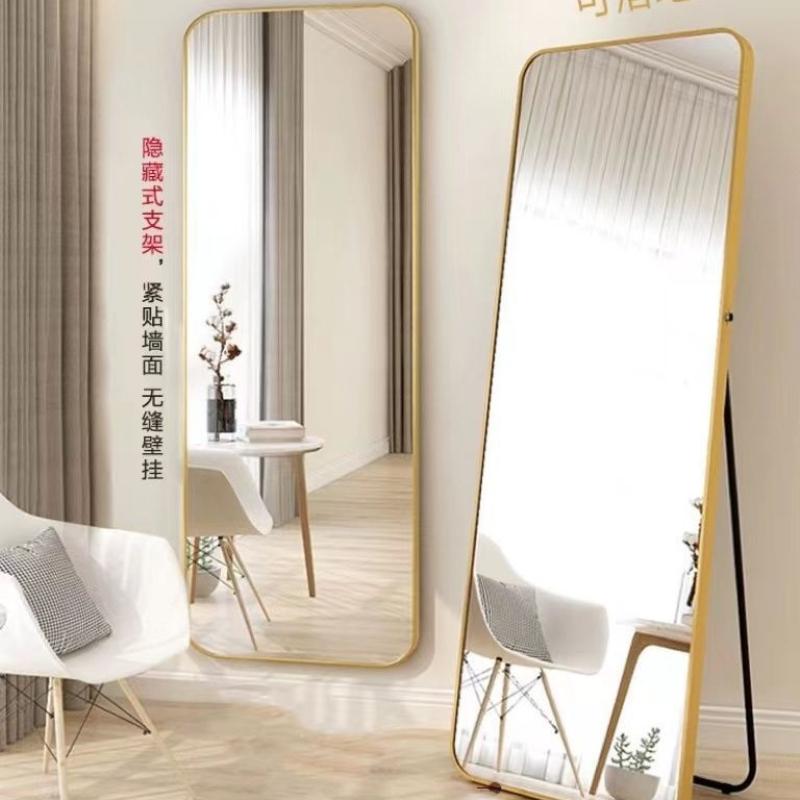 简约高清LED灯全身镜 店铺家居触摸发光落地式壁挂两用网红穿衣镜