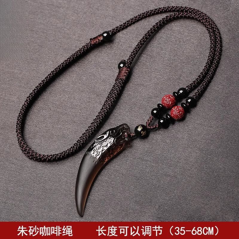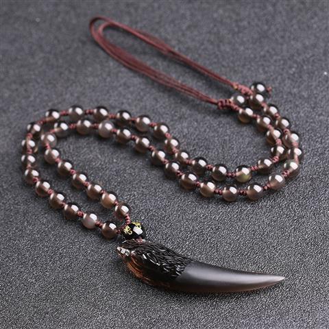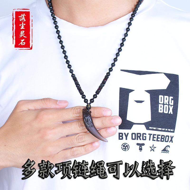 天然冰种黑曜石狼牙吊坠男款霸气潮人挂坠摸金符项链礼物大气