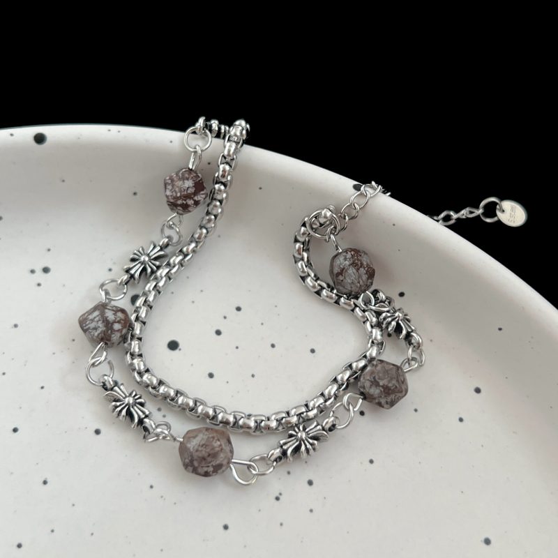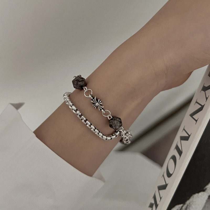 刊赛复古十字花天然石钛钢手链冷淡风小众个性百搭潮流日韩手饰品