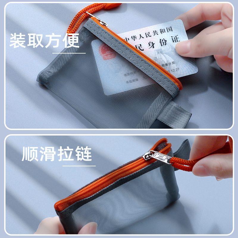 透明零钱卡包网格拉链包卡片硬币身份证银行卡收纳包迷你尼龙袋证件门禁卡小巧简约迷你短款小钱包装耳机小型