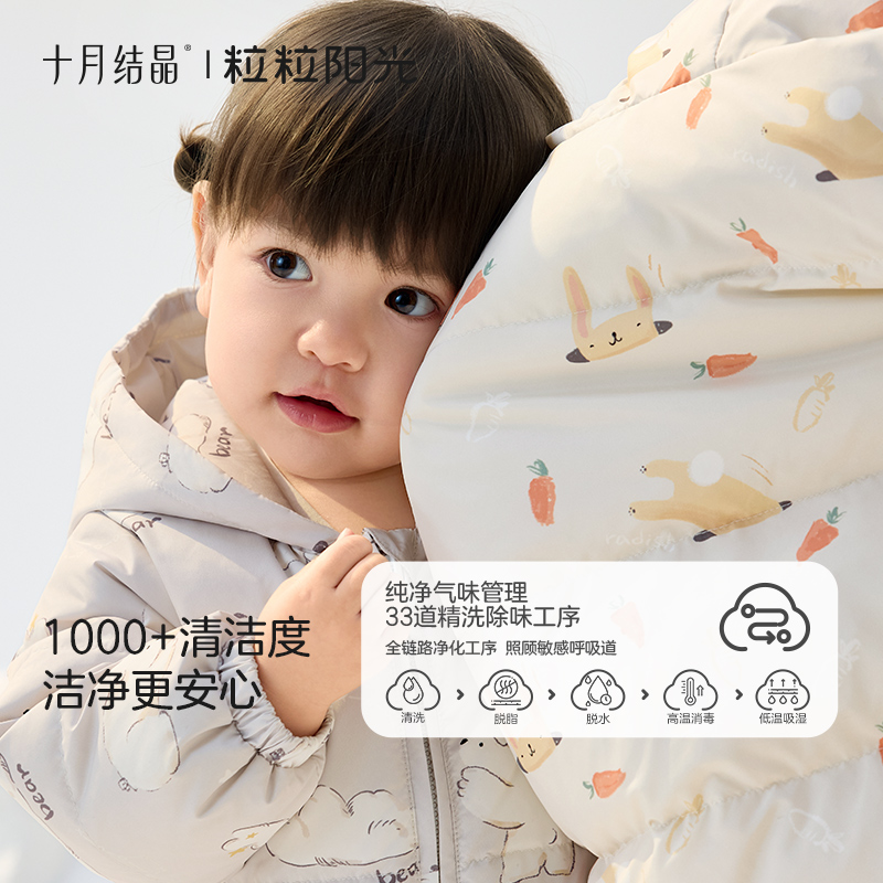 十月结晶粒粒阳光婴儿羽绒服寒冬季婴儿连体衣白鸭绒蓄热羽绒爬服