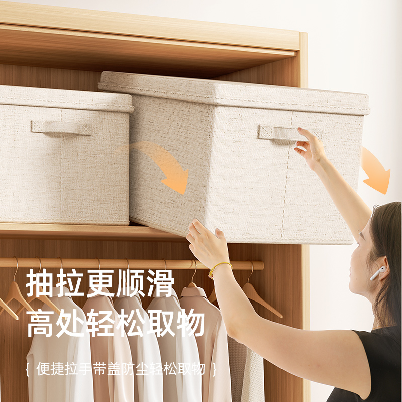 收纳箱天山棉麻带盖衣服衣物家用布艺衣柜整理储物箱盒可折叠抽屉