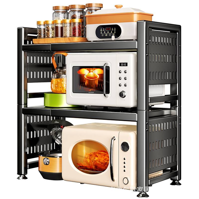 可伸缩厨房置物架微波炉架子烤箱收纳家用双层台面桌面多功能橱柜
