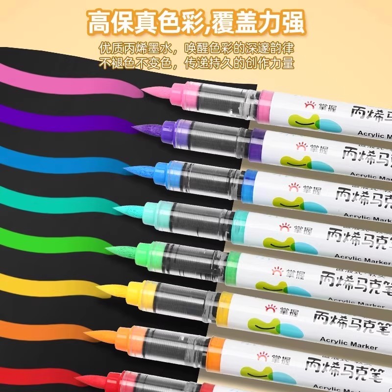 掌握直液式丙烯马克笔小学生美术专用不透色软头绘画画笔儿童节礼物无毒可水洗幼儿园涂鸦涂色DIY彩色笔炳稀