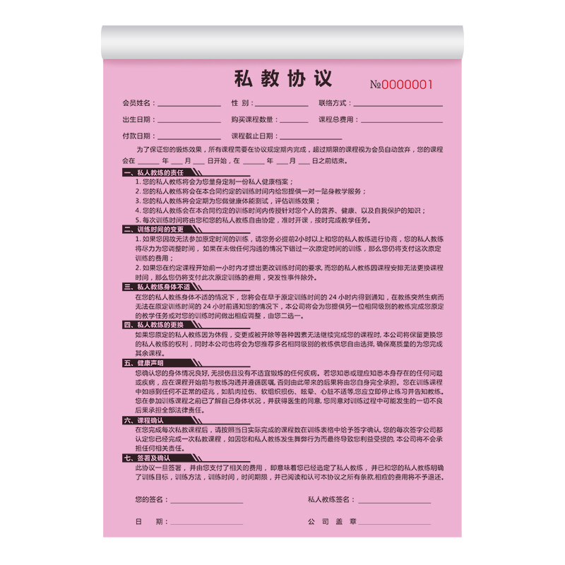 私教合同二联健身房会员免责协议书瑜伽馆入会身体评估表工作室课程私教课合约教练申请计划本普拉提会籍单据
