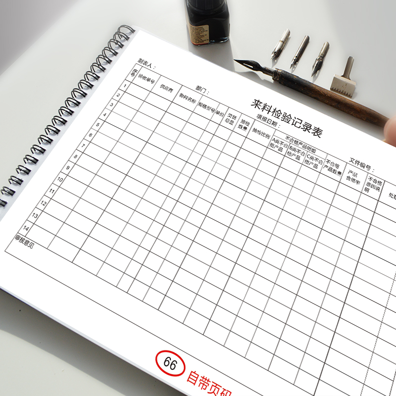 来料检验记录表检验来料验收登记本工厂物料登记本车间验收产品信息记录本耗材车间原材料即验检验记录簿