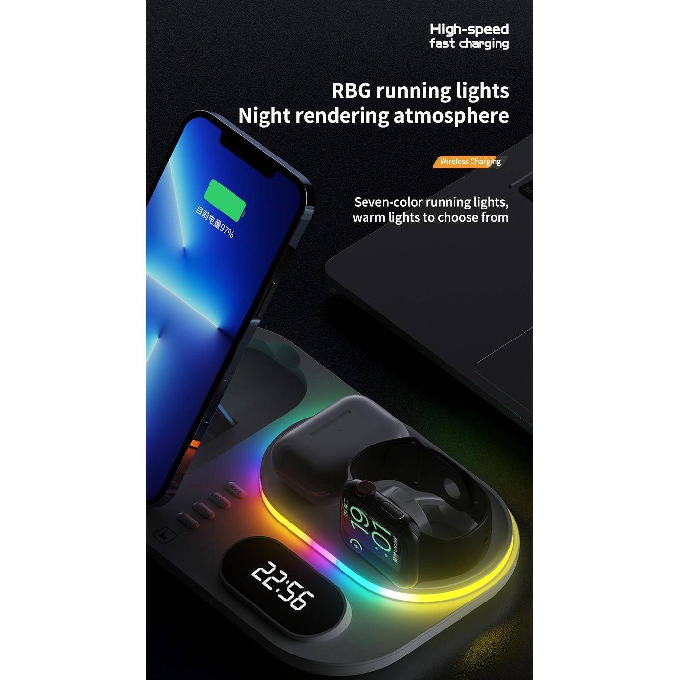 30W 4合1多功能无线充电器RGB七彩灯 手机手表耳机折叠无线充电器
