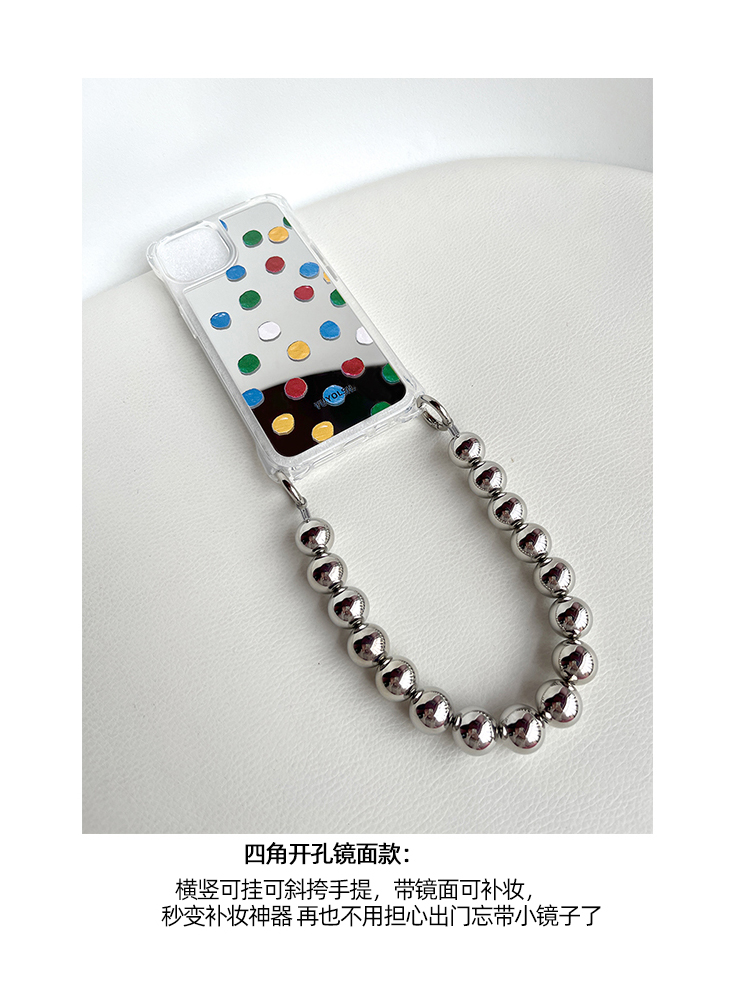 草间弥生-高级感时髦手绘彩色撞色波点镜面四角开孔带挂环16ProMax手机壳15全包防摔新款
