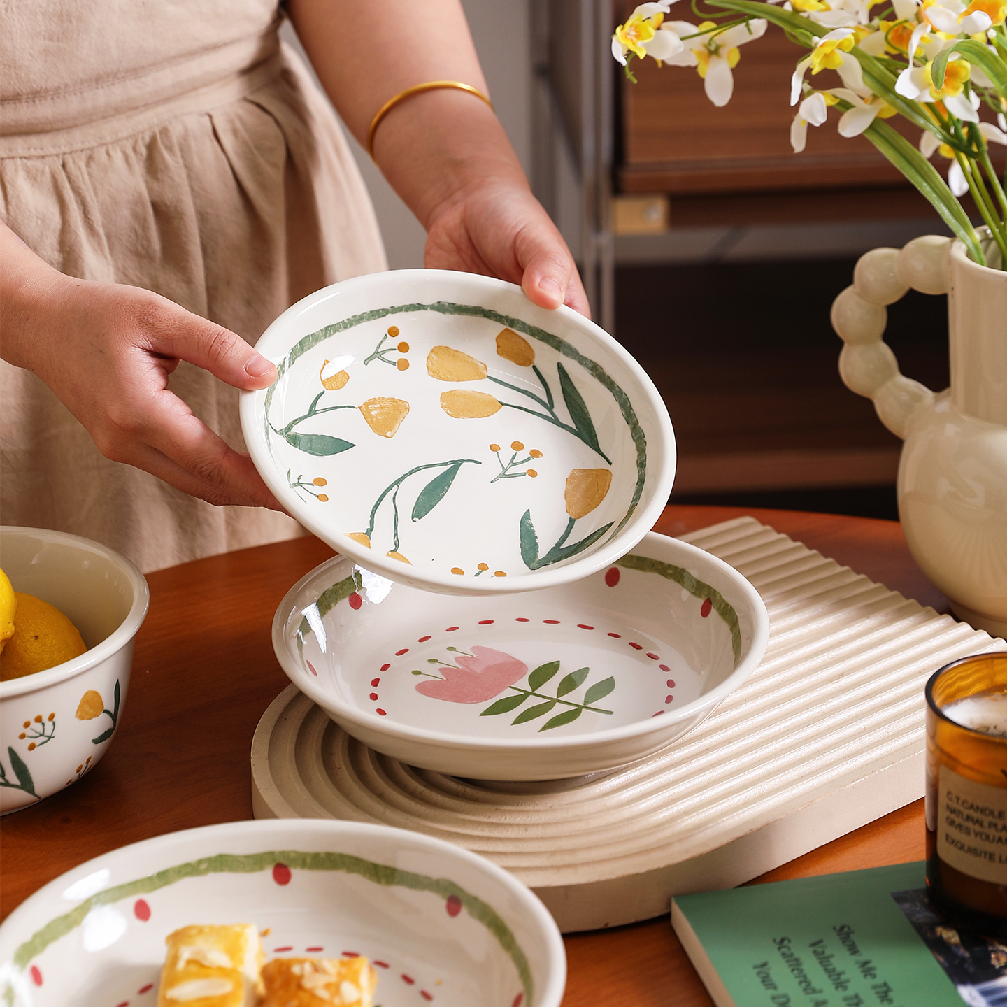 奶油风陶瓷碗家用卡通菜盘子可爱米饭碗汤碗釉下彩儿童餐具耐高温