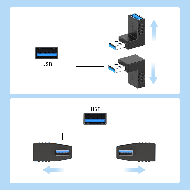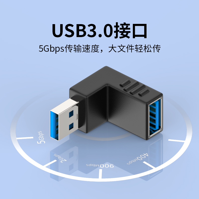 USB公对母转接头90度弯头直角L形usb3.0加长延长线电脑车载手机U盘鼠标键盘数据线上下左右弯usb公转母转接器