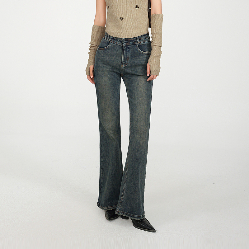 记忆的起点牛仔加薄绒喇叭裤2024冬季新款高腰提臀裤子68TD29313