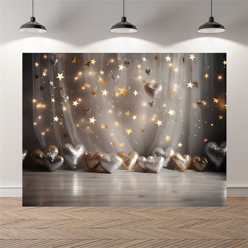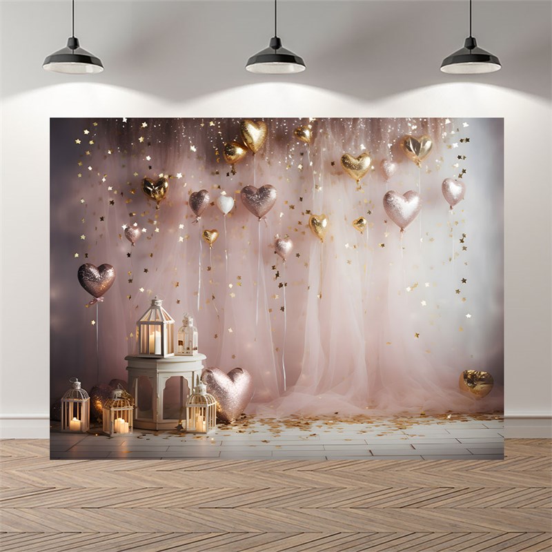 浪漫情人节主题生日氛围感背景布订婚爱心气球金银闪片挂布布置