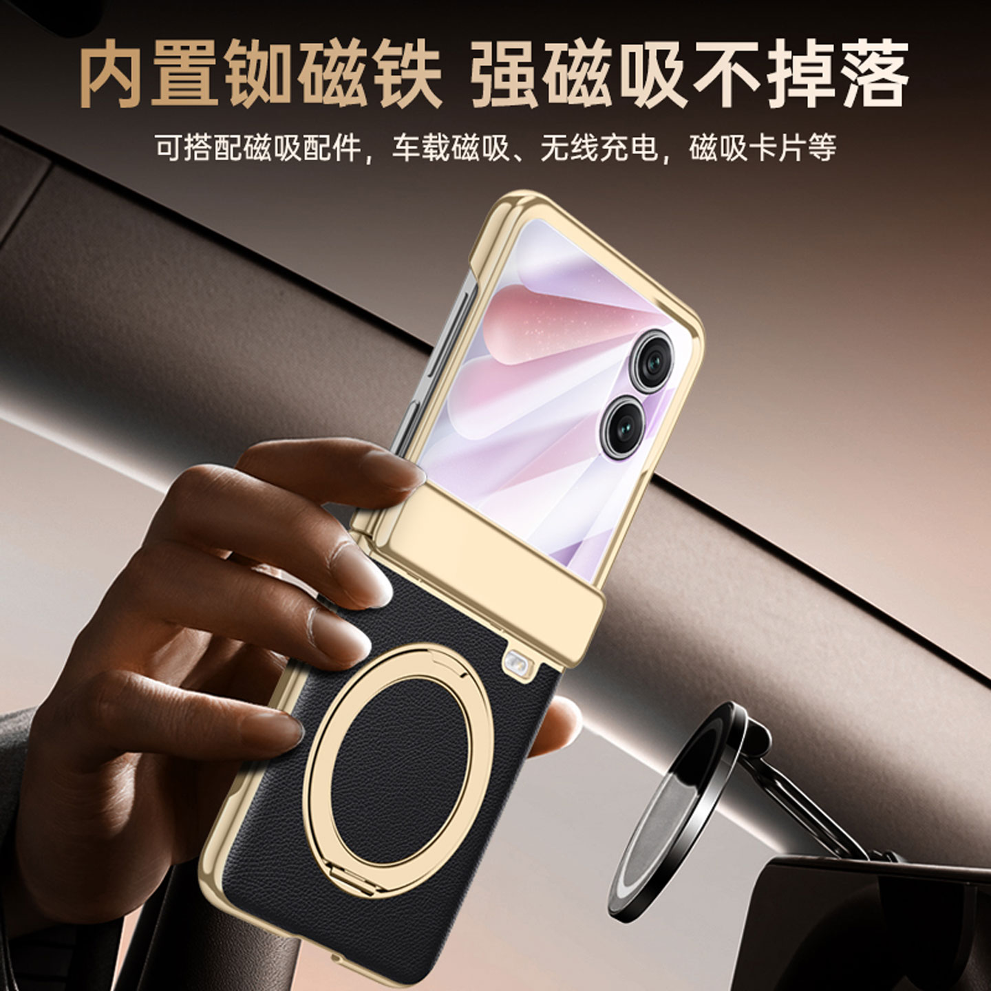 乐比亿适用荣耀magicvflip2手机壳magic v flip2新款保护套hh华为的小折叠屏vflip2超薄真皮全包外壳磁吸支架