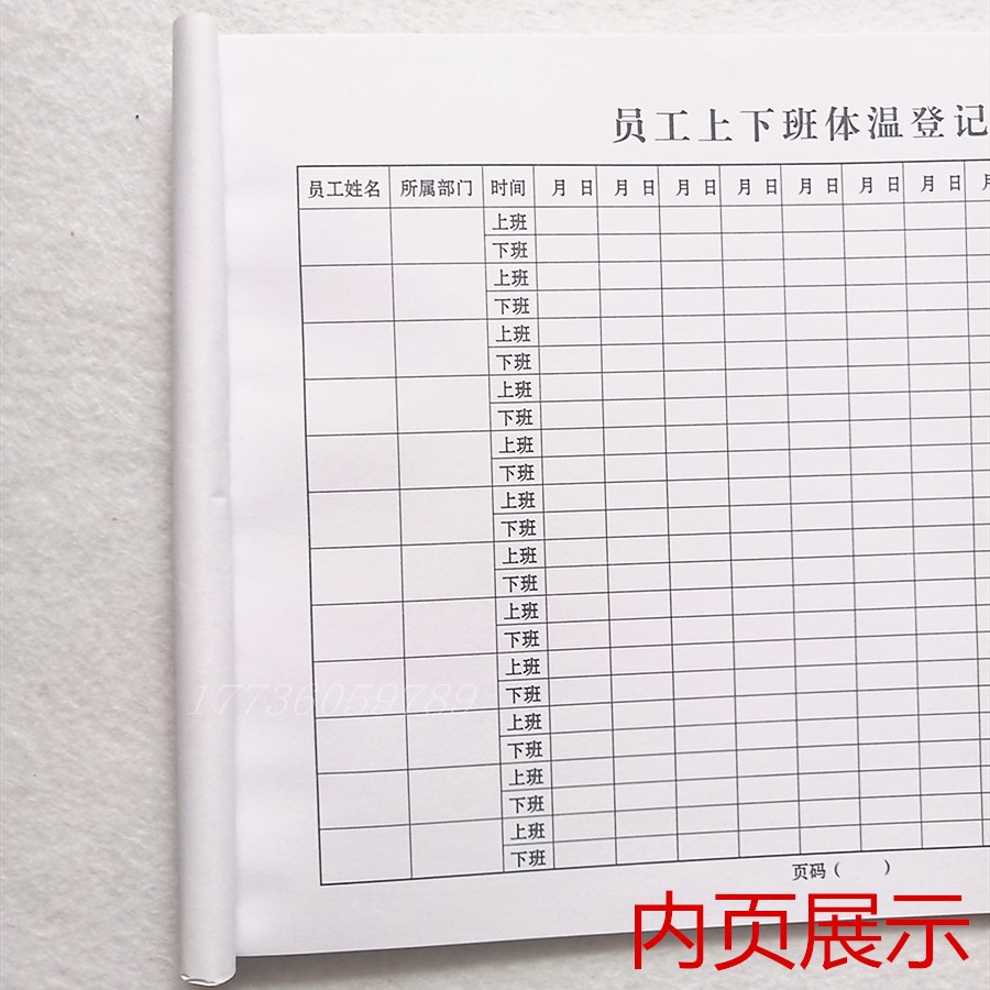 员工上下班体温登记簿温度测量记录表企业复工疫情管控新冠病毒本