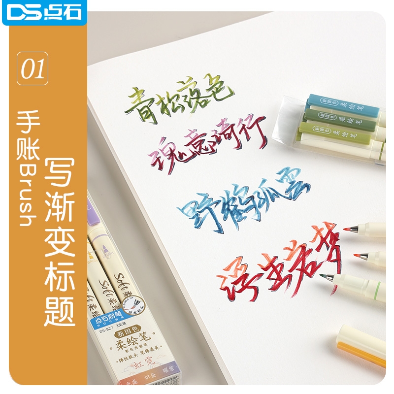 点石soft弹性软头柔绘笔48色全套彩色秀丽笔儿童水彩画笔勾线笔红彩绘国风手绘笔新国色儿童适用制笔便宜柔顺