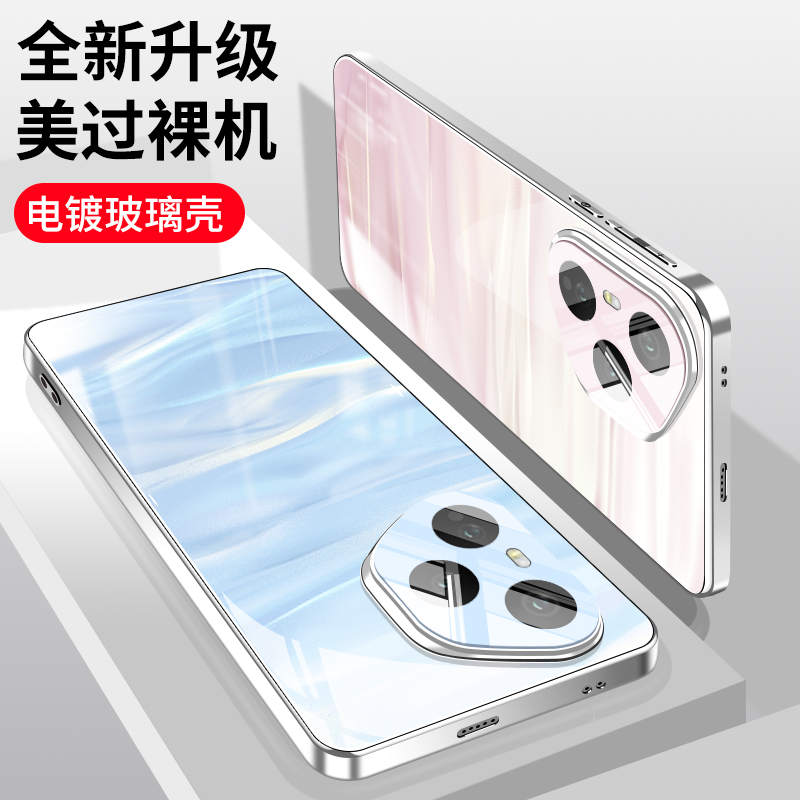 适用荣耀400Pro手机壳荣耀400新款镜头全包电镀玻璃壳防摔Honor新品砂岩粉专用高端保护套海风蓝情侣款外壳