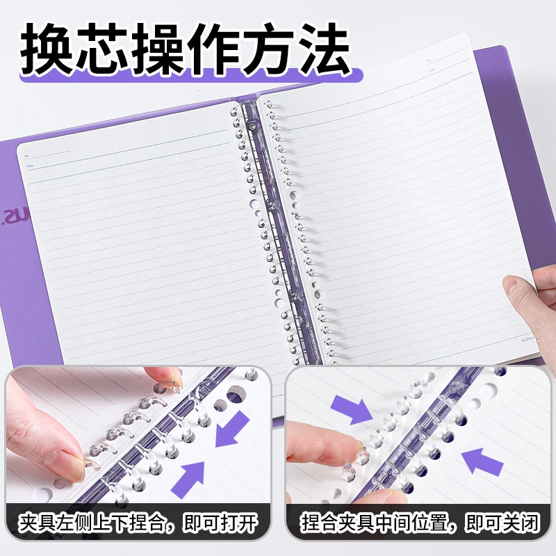 日本KOKUYO国誉Campus秒开活页本B5大容量笔记本可拆卸换替芯活页本纯色简约本子活页轻薄便携记事本一捏即开