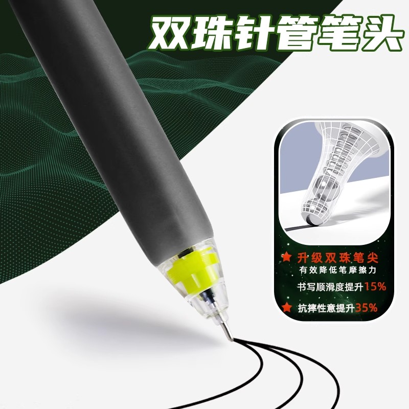 点石之制笔静响控中性笔黑科技静音文具黑色水性签字圆珠初中小学生专用速干顺滑刷题笔双珠全针管新品时空舱