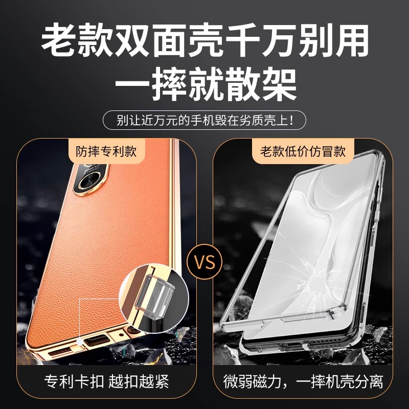 【素皮+玻璃】适用于华为畅享60手机壳畅亨60pro畅想60x专用双面保护壳hi高级感六十六零6O创享荣耀外壳透明
