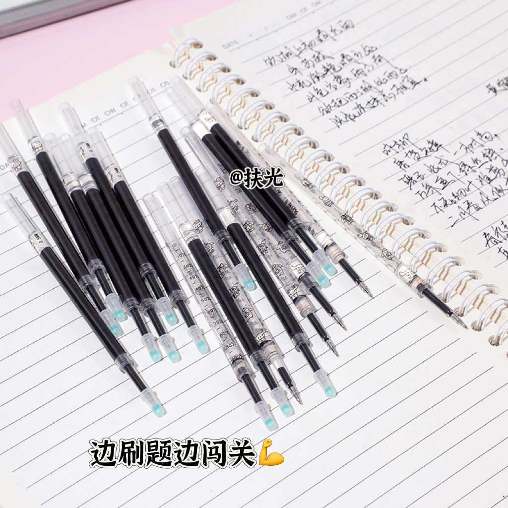 三丽鸥自勉可爱按动笔芯st中性笔芯速干不断墨学生考试刷题黑笔芯