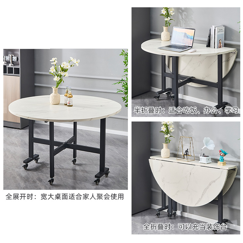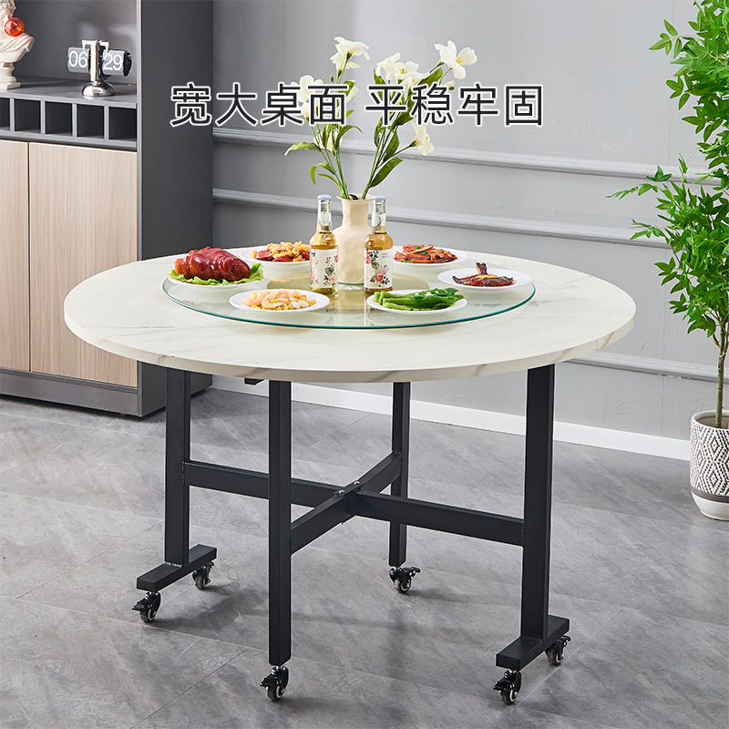 折叠餐桌家用小户型圆形客厅多功能折叠桌可移动10人吃饭大圆桌