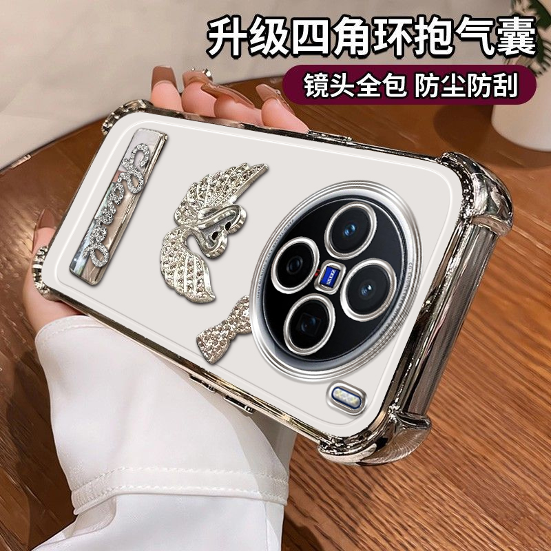 适用VIVOX200手机壳闪钻天鹅电镀四角防摔vivoX200Pro简约硅胶气囊全包X200Promini闪钻字母电镀支架保护套