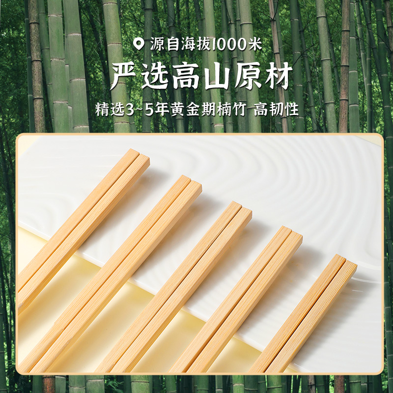 家用天然楠竹筷子实木高档防滑无漆无蜡抗菌防霉耐高温食品级用筷