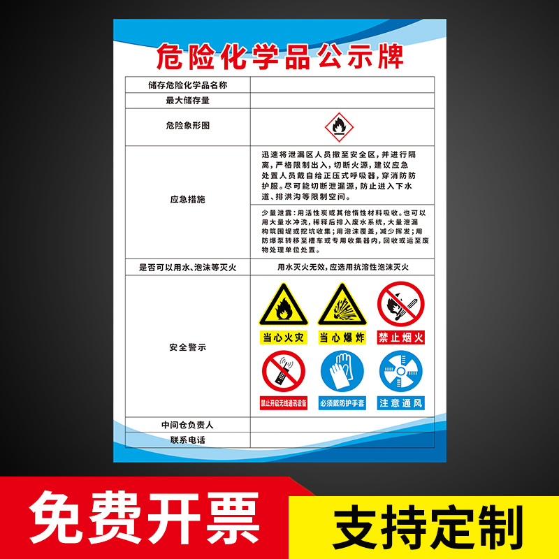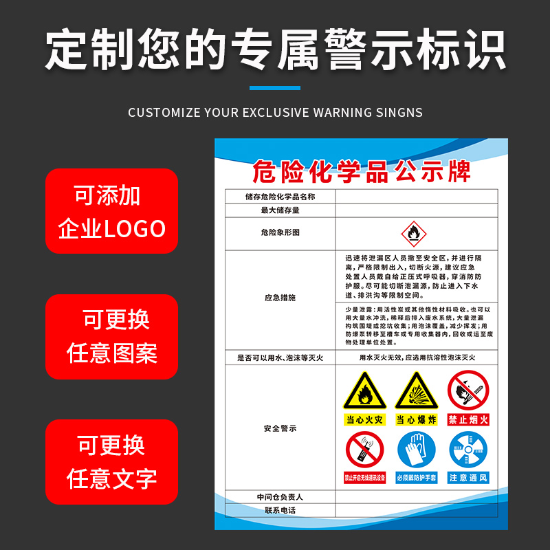 危险化学品公示牌化学品储存柜标签告知卡中间仓负责人告知牌出入柜记录责任书安全生产应急措施安全警示标识