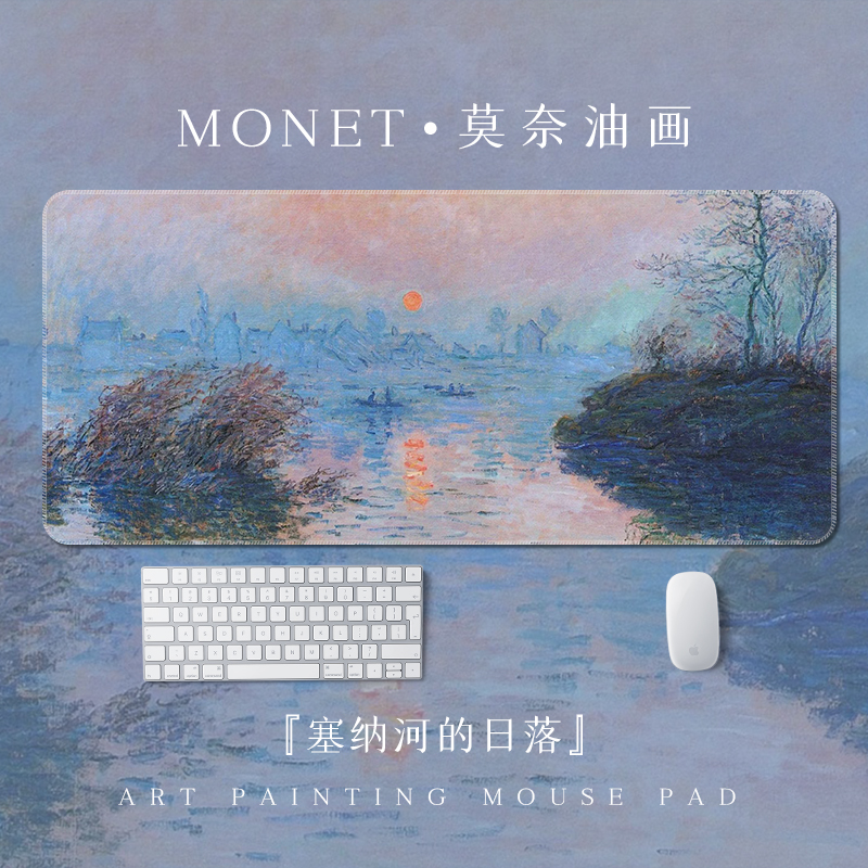 莫奈油画鼠标垫超大号高级感艺术桌垫睡莲加厚办公电脑键盘垫定制