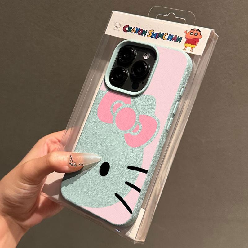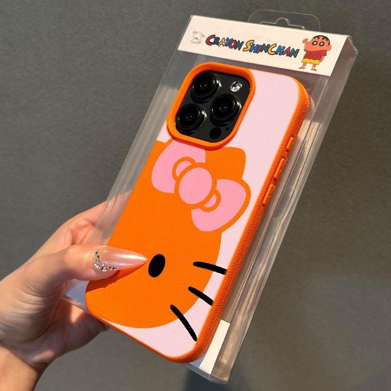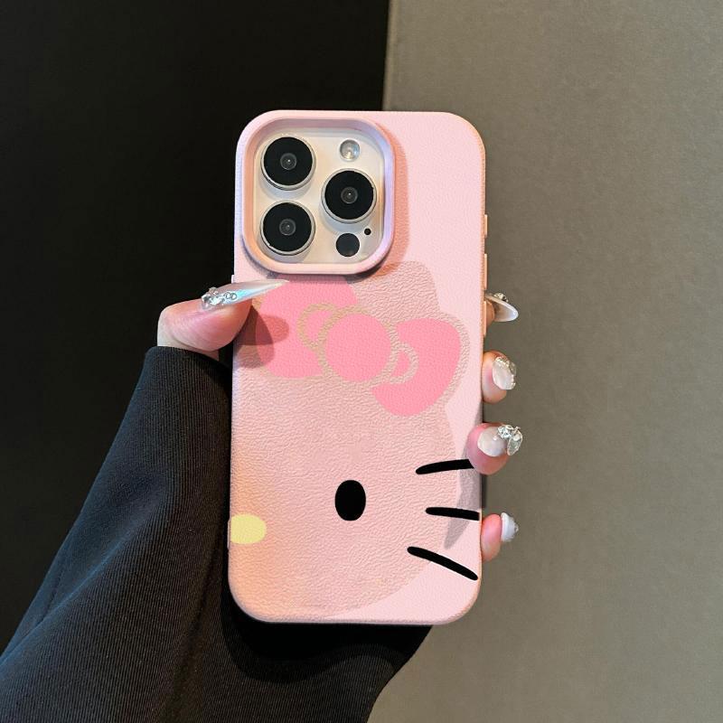 日韩卡通可爱Kitty猫适用苹果15promax手机壳iPhone16pro新款荔枝纹13趣味12个性皮质11防摔14pro保护套女款