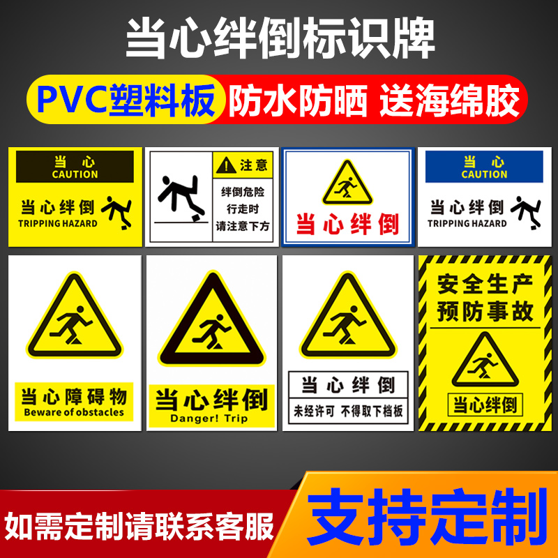 当心绊倒标识牌 未经许可不得取下挡板小心障碍物安全生产预防事故请注意下方危险安全警告警示提示指示牌