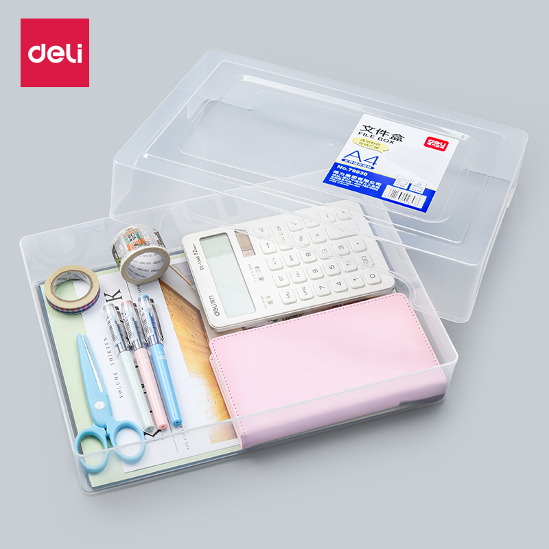 得力A4纸透明文件盒档案袋资料塑料收纳大号重要证件收纳整理箱多功能桌面整理神器大容量用简约加厚78930