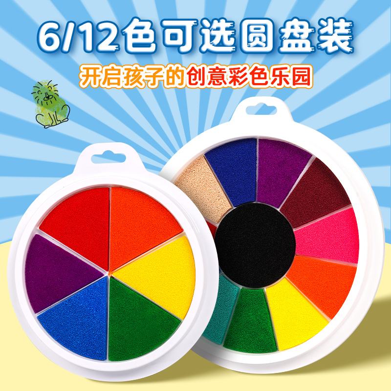 儿童手指画彩色印泥手印多色按指纹手印手掌画印泥印盘幼儿园无毒颜料可水洗12色海绵印台小学生绘画工具印尼