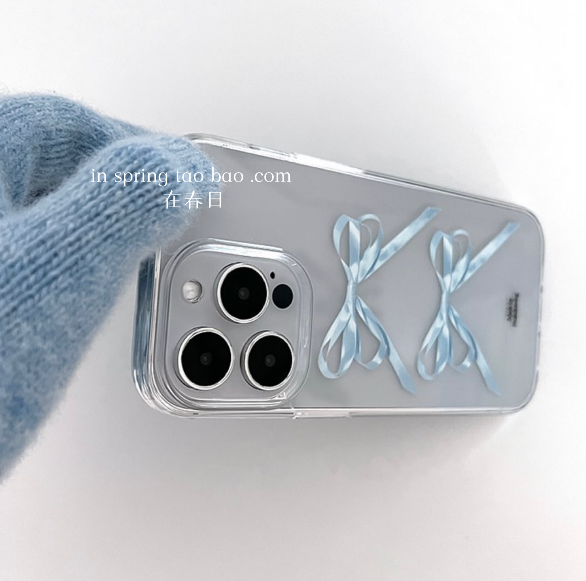 韩国ins同款婴儿蓝蝴蝶结手机壳适用苹果15promax/12软壳iPhone13pro/11/14pro/15全包16promax新款17promax