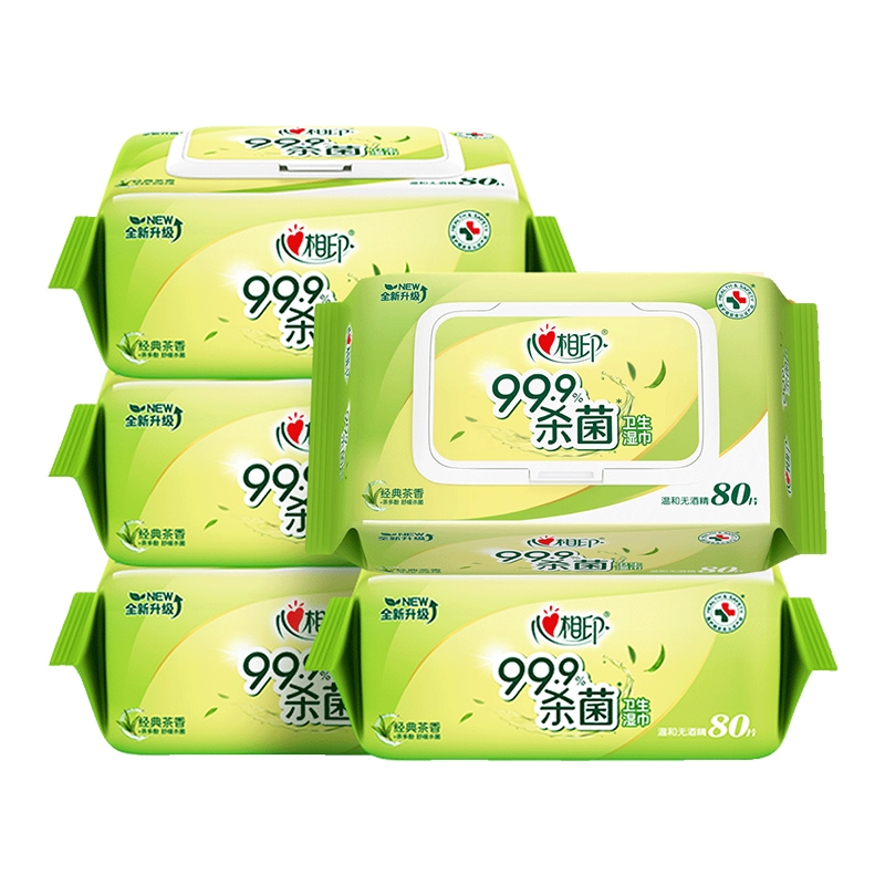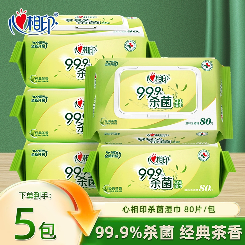 心相印湿巾大包80片消毒杀菌纸巾茶香湿带盖批发家用无酒精清洁