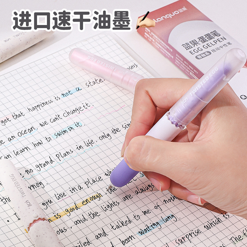 蓝果蛋蛋中性笔扭动式出芯高颜值速干顺滑学生专用刷题笔0.5mm签字笔CS高精密笔尖初高中生书写考试碳素黑