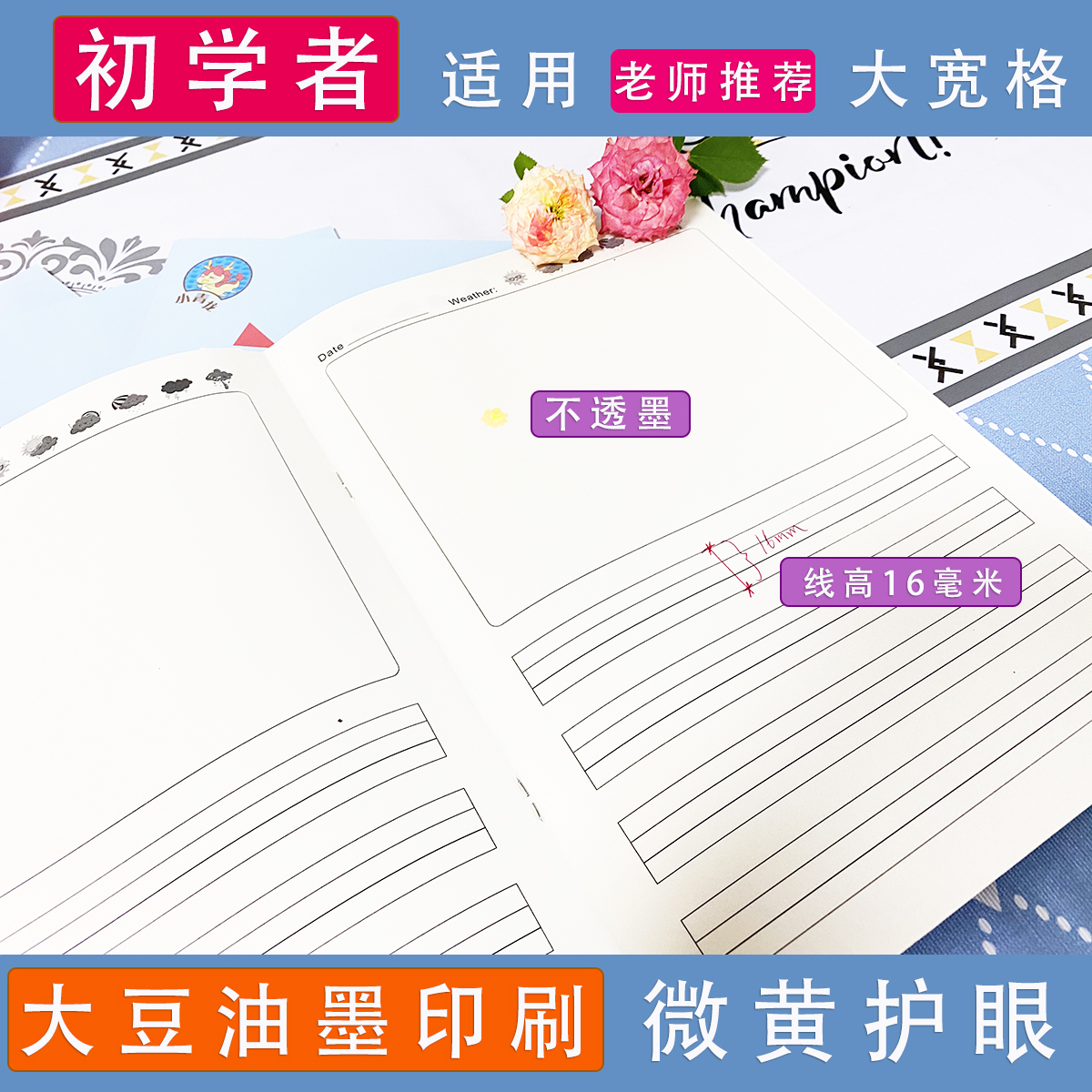 加厚微黄护眼纸张初学者幼儿园小学生大宽格绘画日记本英语作业本