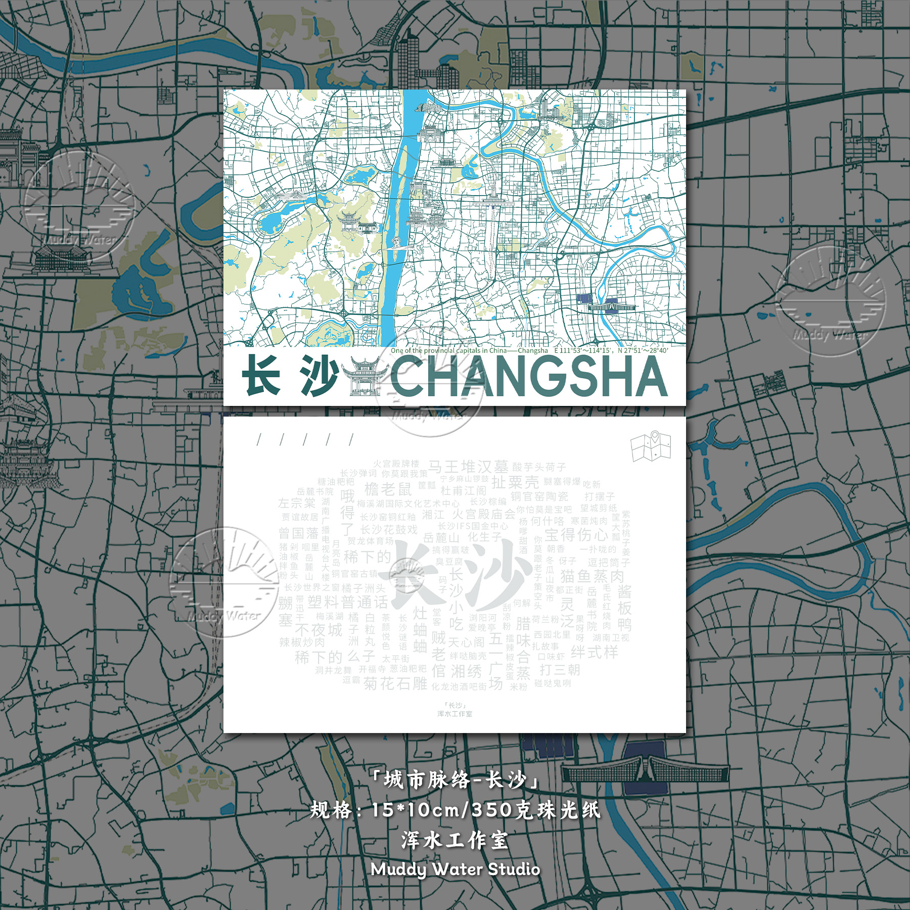 「城市脉络-长沙」原创地图创意明信片插画高级文艺旅游贺卡礼物