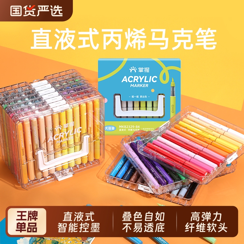 恩米小黑盒直液式丙烯马克笔小学生专用软头美术生儿童手绘画画涂鸦不透色可叠色可水洗彩笔速干防水80色画笔