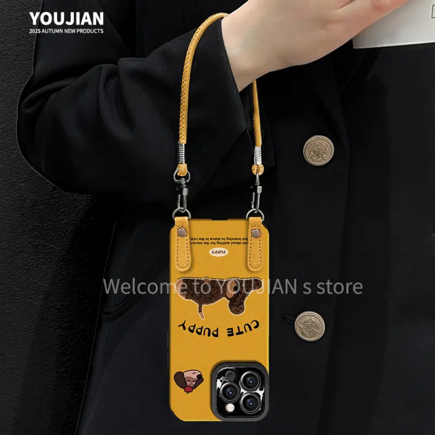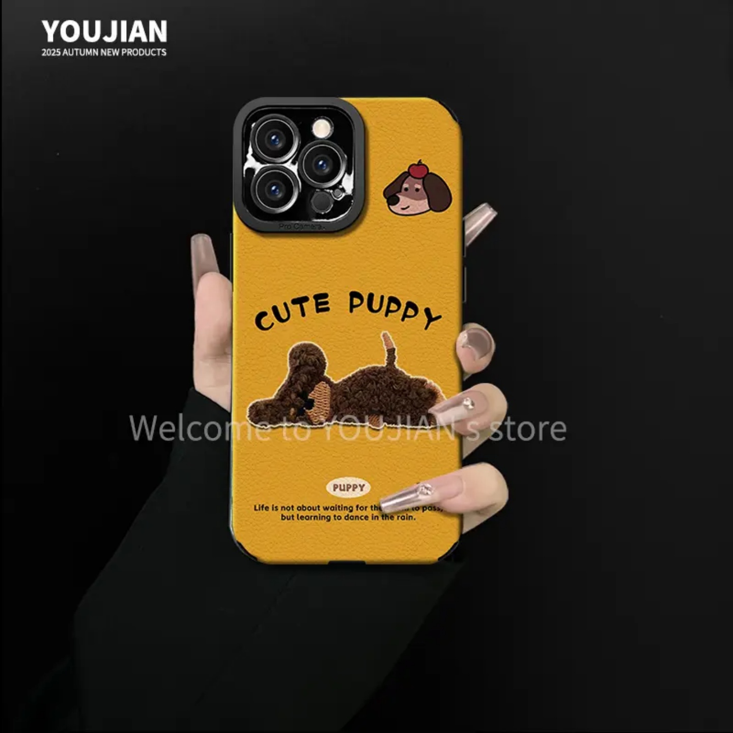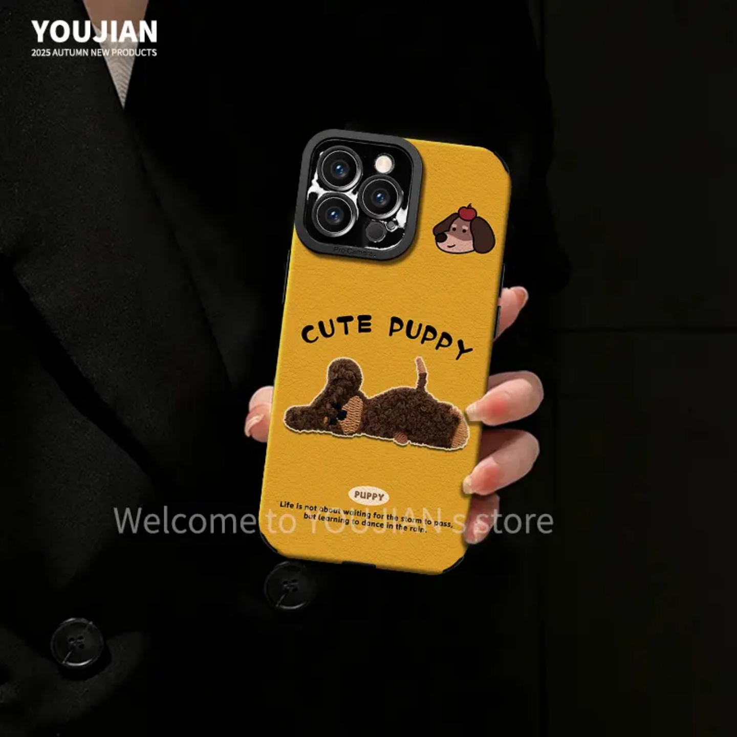 秋冬姜黄色刺绣小狗适用苹果/华为荣耀/oppo/vivo/小米手机壳新款16promax网红防摔pura70女款带手提爆款外壳
